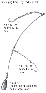 Bueno ahora busca tu playa, saca tu caña, amarra el leader a la linea madre, prepara tu aparejo, enganchalo en el pinche del leader y ponle un pedazo de carnada a los anzuelos y listo lanza al mar y espera por lo menos hasta 20 minutos al menos que sientas que algo jala.
