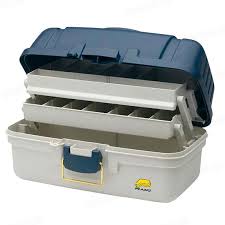 La caja de aparejos Plano tiene dos bandejas y una gran área abierta debajo de la bandeja para cebos, alicates, plomadas, anzuelos, etc. empaquetados. Las bandejas pueden contener todo tipo de cebos, incluidos 2 espacios en la bandeja superior para 12 cebos giratorios de mayor tamaño. Viene con un pestillo de latón para asegurar la tapa.