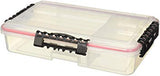El Plano 3741 es una caja de utilidad profunda de tamaño 3700 en su línea mejorada de StowAways impermeables. Asegurada con tres pestillos de acción de leva de sellado herméticos y forrada con un sello de junta tórica Dri-Loc, esta caja hermética evita que el agua dañe los objetos de valor. Cada una de las cajas StowAway impermeables de Plano son versátiles en su uso, pero resultan más efectivas para algunas aplicaciones que para otras. Nos gusta mucho el profundo 3741 para almacenar herramientas, linternas y baterías, esencialmente cualquier cosa que deba mantenerse seca y que no quepa en las cajas impermeables más delgadas.