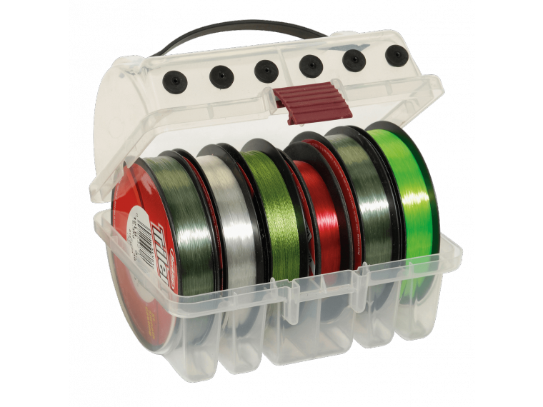 El compartimento principal tiene seis carretes de línea de hasta 1 "de ancho