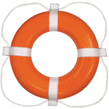 Inspeccionado y probado de acuerdo con las regulaciones de la Guardia Costera de EE. UU. Los anillos contienen espuma de poliuretano unicelular para flotabilidad. Las líneas flotantes de agarre de polipropileno contienen estabilizadores UV para mejorar la resistencia a la luz solar. Los anillos cuentan con orificios cosidos para asegurar la línea de agarre.
