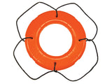 Inspeccionado y probado de acuerdo con las regulaciones de la Guardia Costera de EE. UU. Los anillos contienen espuma de poliuretano unicelular para flotabilidad. Las líneas flotantes de agarre de polipropileno contienen estabilizadores UV para mejorar la resistencia a la luz solar. Los anillos cuentan con orificios cosidos para asegurar la línea de agarre.
