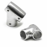 La camiseta de 60 ° proporciona conexión en los puntos intermedios de soporte de los rieles donde se requiere un aumento pronunciado de la altura del riel. Cada uno incluye tres tornillos de ajuste de punto de conexión de 1/4 "-28 para la conexión a la tubería.