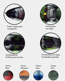 Ideal para realizar travesías largas, cómodas y estables, posee timón rueda para transporte, portacañas con tapa posee un compartimiento para acceder cómodamente a objetos de necesidad espontánea como una botella de agua, un celular, navaja, orificios para accesorios y contenedor grande en la parte de proa