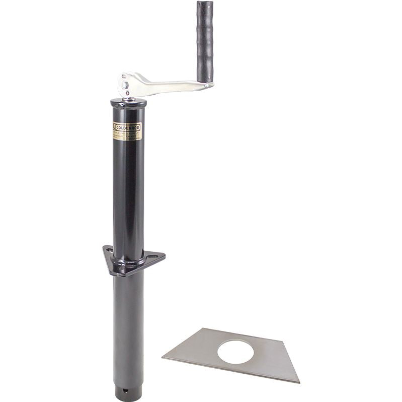 El gato modelo 6671B con marco en A, 5000 lb, incluye soporte de soporte para mayor estabilidad (el soporte de soporte se suelda a la parte inferior del remolque). El gato puede soldarse o atornillarse a los acopladores estándar de marco A. Acabado negro con recubrimiento en polvo. La rueda o pie desmontable se vende por separado.
